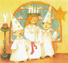 A var lucia, K tärna och lille A stjärngosse. De var så duktiga och luciatåget var så fint. Allt var så lugnt, högtidligt och vackert.